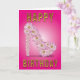 Original greeting card with a beautiful stiletto shoe full of roses with the birthday greeting in gold tones and rhinestones.