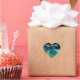 Customizable heart sticker, featuring an abstract teal (turquoise) roses with faux glitter design. The glitter effect is printed on a flat surface. The text and the font can be edited. We offer matching party supplies.