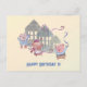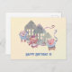 Wish a Happy Birthday with this Three Little Pigs and their respective houses birthday celebration postcard.