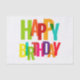 Colorful Tissue Paper with bold vibrant letters spelling "Happy Birthday.