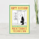 A birthday card with a cartoon of a man waiting for a lift or elevator. The buttons have Up, Down, and Lucky Dip as options. Ideal card for any Maintenance Technician.