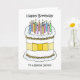 A cartoon of a white birthday cake decorated with small flowers and several multi colored candles. The words 'Happy Birthday to a Special Janitor' accompany the image.