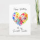 A pretty floral heart in magenta, pink, yellow and purple watercolor ai art. Personalized Birthday card for a teacher.