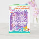 Cute Cartoon Dinosaurs Labyrinth Puzzle Game Greetings Card. Can you bring cartoon T-Rex through the maze to his friends blue Stegosaurus, orange Diplodocus and yellow Triceratops? Inside the card happy cartoon T-Rex, Stegosaurus, Diplodocus and Triceratops in a pre-historic landscape with trees, mountains and vulcanos and color stars. This great dinosaur maze puzzle game card is fully customizable, add your texts and images! A great dinosaurs game page for the big little dinosaur fans!