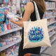 A festive beige tote bag with a colorful “HAPPY BIRTHDAY” design surrounded by bright floral and abstract accents—perfect for gifting or celebrating in style.
