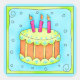 Happy Birthday sticker for third (3rd) birthday or any birthday. This art features a green and orange birthday cake with pink candles on an aqua turquoise blue background. The design is surrounded by a whimsy lime green border and turquoise blue background. Celebrate a birthday or other occasion with the whimsy cake and cupcake original art that is perfect for both boys and girls as well as adults. The colors are in both softer and more vibrant colors.