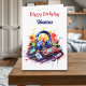 A cute watercolor gaming themed birthday card for a boy. Good for pre-teen or teenager. An ai illustration of a video game, games, headphones and other fun accessories on the front of the card. Have an awesome day on the inside. All text on the card can be edited in the personalize area.