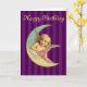 Happy Birthday - Vintage angel on a crescent moon Card