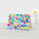 This Happy Birthday card with this abstract art will bring a smile on anyone on their special day. Colorful squares with blue, pink, yellow, teal and purple. Original art by fine artist and graphic designer Inge Lewis. Shop for matching products at ingeinc.com online store | boutique.