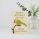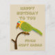 This cute birthday card has my computer generated drawing of a colorful parrot on tree branch perch. This parrot has a green body accented with bright blue. It's head is yellow and blue with a touch of red. You can edit the text on front and back.