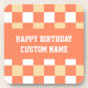 Happy birthday yellow gingham beverage coaster