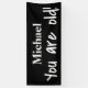 Have fun with someone at a birthday party with this humorous, snarky and sarcastic black banner that has the person's name and says "You are Old". This banner will bring fun and laughs for a great over the hill type party. The words are in white text on black. You can customize to make it totally yours for a unique party or other event. This banner coordinates with other party supplies like paper plates and napkins for a fun coordinated party.