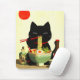 Happy Black Cat Eating Ramen | Japanese Ukiyo-e Mouse Pad