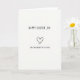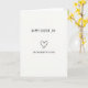 This card features lots of open white space with two short lines of black, hand-drawn lettering that look slightly uneven, like a quick note passed between close friends. The top line reads like a seasonal greeting with one letter missing, leaving a small blank gap that feels like an intentional pause. Just below it, a second line in the same black lettering points out the missing character, turning the layout into a flirty little inside joke. Between the two lines sits a simple, freehand heart icon, its imperfect curves giving it a tender, teasing tone rather than a formal look. The monochrome black-on-white contrast keeps everything focused on the words and the heart, with no extra background scene competing for attention. The spacing between the lines feels close enough to suggest a private exchange, like two people leaning in with a knowing smile. A tiny 🌷 or 🐰 doodle can be added near the corner without changing the spare layout, but the main text remains centered and dominant. The heart is centered between the lines, drawn in black with a slightly thicker stroke than the letters.