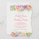 This colorful floral invitation features a wide spectrum of colors and a variety of blooms in a top and bottom matching border. Suitable for any feminine celebration.