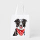 Happy Border Collie with Red Heart Bandana Grocery Bag