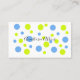 Happy Bubbles Blue and Yellow Pattern Business Card. A funky and fun option for a party / events planner and other professionals who would like to have a stylish yet not boring and cool cards to represent their unique edgy approach. Positive vibes colors, modern and personalized, to add to your individual unique style and make your business stand out. Customize it to suit your needs and to bring necessary edge! A great gift / present idea for all who start a new job / company, love abstract art, circles and balls theme, interesting visual solutions and custom design unique items.