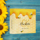 Yellow background with a golden honeycomb pattern. Decorated with dripping honey and happy bumble bees. Personalize and add your monogram initials, name and a title. Yellow and black letters. The name is written with a modern hand lettered style script.