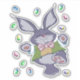Adorable picture of a bunny dancing with colored eggs around him, is featured on these custom -cut stickers. Great to use for decorating, Easter, scrap booking and more!