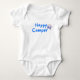 This cute and funny bodysuit features modern typography "Happy Camper" in blue with a cute camping car illustration. Perfect for infants, newborn or baby shower gift.