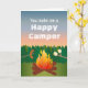 This design features a hot dog and marshmallows toasting over a fire. The background is a tree-lined forest and a sky at dusk. The front reads "You make me a Happy Camper". The inside says "In case I haven't told you lately, you're a wonderful husband, dad, and an all-around great guy. Thank you for making me the happiest woman in the world. Happy Birthday." While the text is aimed at a guy, this card can easily be personalized for anyone. It's especially great for people who like a cookout, bonfire, camp out, nature or the great outdoors.