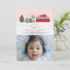 Happy Camper Christmas Pink 1st Birthday Photo Invitation