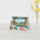 Customize the text in this cute greeting card for any occasion! Know someone who is about to go on a big trip? Want to wish someone special a happy birthday? This cute card features an image of a cozy bed, looking out to mountains from a small camper.
