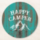 Happy Camper Rustic Mountain Adventure Teal Barn Wood Camping Coasters.