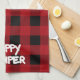 Happy Camper Red and Black Buffalo Plaid Kitchen Towel