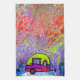 Multi Colored background with a colorful camper and the saying "Happy Camper" adorns this towel