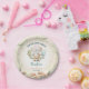 Cute happy camper paper plates for 1st or any little boy Birthday featuring the cutest little bear, balloons, van and mountains in blue and comforting colors. It captures the spirit of fun in the sun on your backyard bbq, picnic, mountains or any outdoor birthday party :) Easily personalize all the text. - Kate Eden Art.