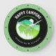 Any couple's name happy campers clock with centered camping scene inside a black background with a sage green colored border. Just use the "personalize this template" option to change the text. Just choose the hand color and size.