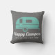 Happy Campers Gray Teal Camping Throw Pillow