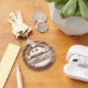 A simple yet stylish keychain with the phrase 'Happy Campers'. Customize with your family name. Shown with a rustic wood slat background, perfect for holding your camper or motorhome keys.