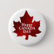 Happy CANADA DAY RED MAPLE LEAF Button