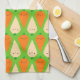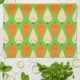 A repeat pattern of kawaii carrots and parsnips on a green background.