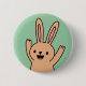 Cute brown happy bunny rabbit waving its paws in the air on a green background.