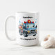 Happy cartoon fire truck ready to roll coffee mug