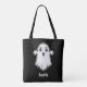 Happy Cartoon Ghost With A Custom Name Black Tote Bag