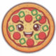 A playful, smiling cartoon pizza shines with pepperoni and green pepper toppings. Crisp crust, gooey cheese, and big friendly eyes evoke fun, family-friendly appetite appeal, perfect for kids’ menus and food branding.