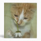 Tabby kitten playing with a daisy.
