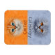 The face of a fluffy orange Tabby Cat kitten with piercing blue-green eyes, and the face of a fluffy grey Tabby Cat kitten with piercing yellow-orange eyes. Flip to show other household members whether your pet needs feeding or has already been fed.