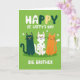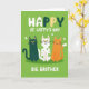 This card shows a lime green background with three friendly cats lined up side by side, their bodies close enough to feel like a little team. On the left is a dark teal cat with bright yellow eyes and a soft smile, looking toward the others as if keeping them company. In the middle, a white cat covered in green polka dots leans in with an easy, affectionate presence, and on the right an orange tabby with a lightly striped tail faces forward like it’s posing with friends. Across the upper area, the headline “HAPPY ST. CATTY’S DAY” sits in large letters, with a green four-leaf clover standing in for the “A,” adding a ☘️ touch to the theme. Scattered near the top are tiny white, star-like blossoms that give the space a light, airy feel. Along the bottom, “BIG BROTHER” appears in smaller text, centered and easy to spot, like a quiet note tucked under the picture 💚. The cats are drawn in a flat graphic style with smooth shapes and simple facial features, and the white blossoms sparkle against the green field.