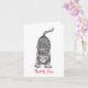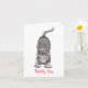 Happy Cat thank you card features a cute grey cat stretching over fun pink Thank You type. This original artwork by artist Leslie Sealey is the perfect way to thank your pet-sitter, vet or anyone who loves cats!