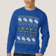Loaves of bread and menorahs and stars and dreidels make up this "ugly Hanukkah sweater".