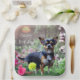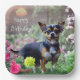 These birthday party plates feature a cute chihuahua standing in a flower garden.