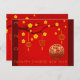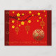 Stylized illustration with yellow "apricot" blossoms, Asian lanterns with red background. Design on horizontal holiday postcard with custom year 2022 and "HAPPY CHINESE NEW YEAR" in yellow + a small "golden" Rabbit paper-cut (image printed) in the corner. You can easily change text (font color, size and position) + delete the Tiger illustration if you want by clicking the customize button. Matching greeting card. Perfect for Chinese New Year of the Rabbit 2023.