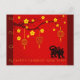 Stylized illustration with yellow "apricot" blossoms, Asian lanterns with red background. Design on horizontal holiday postcard with custom year 2022 and "HAPPY CHINESE NEW YEAR" in yellow + a small black Tiger paper-cut (image printed) in the corner + same background in back. You can easily change text (font color, size and position) + delete the Tiger illustration if you want by clicking the customize button. Matching greeting card. Perfect for Chinese New Year of the Tiger 2022.