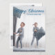 Happy Christmas Chic Blue Cursive Script Photo Holiday Card