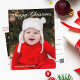 Elegant Happy Christmas photo postcard with beautiful cursive script in white. This modern holiday family vertical photograph card features gorgeous typography and your name in over the full bleed picture in white at the bottom. Add a 2nd winter photograph to the back of this classic card. Perfect to celebrate a smiling baby or happy child.